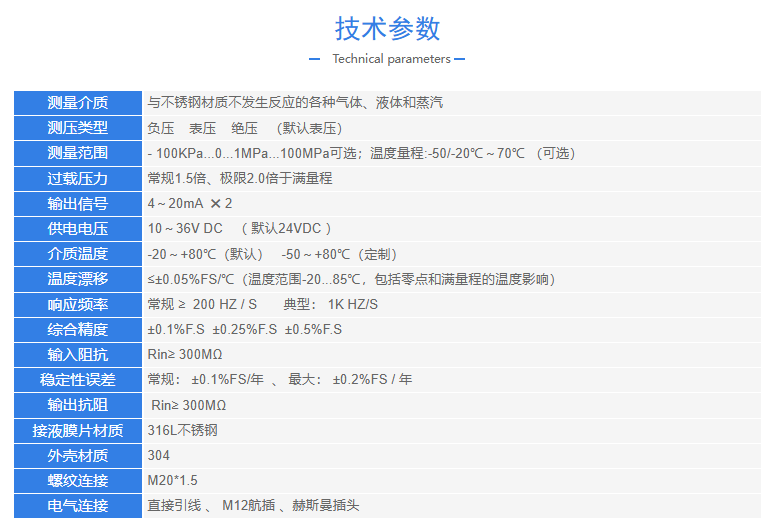◆温度和压力敏感元件统一前置,测量频响高;