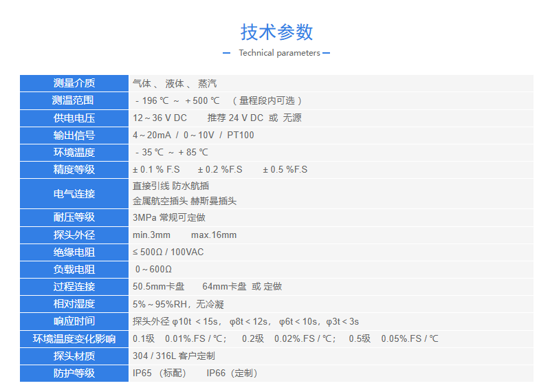 ◆采用符合IEC 60751 (A级或更高等级)的Pt100温度传感器;
