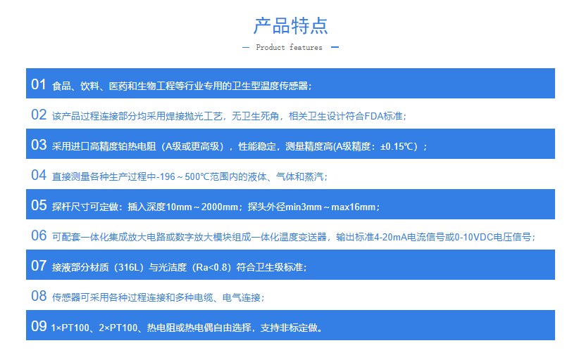 ◆食品、饮料、医药和生物工程等行业专用卫生型传感器;