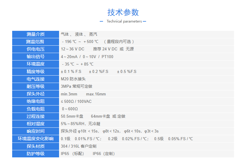 ◆采用符合IEC 60751 (A级或更高等级)的Pt100温度传感器。