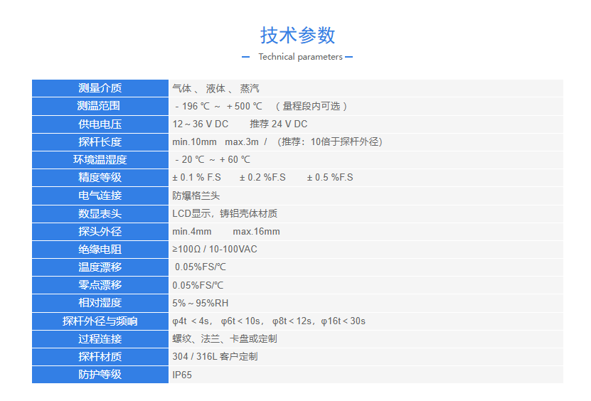 ◆采用符合IEC 60751 (A级或更高等级)的PT100温度传感器;