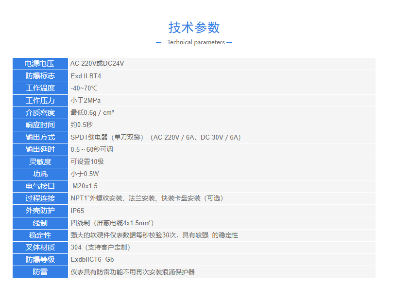 ◆检测不受被测介质介电常数及密度影响,测量何种介质都不需现场调教;